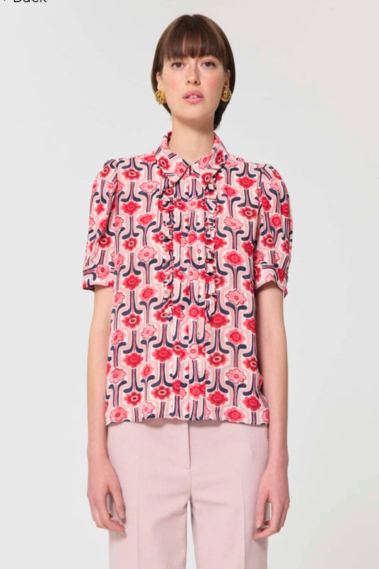 Top Theodora pale pink retro print